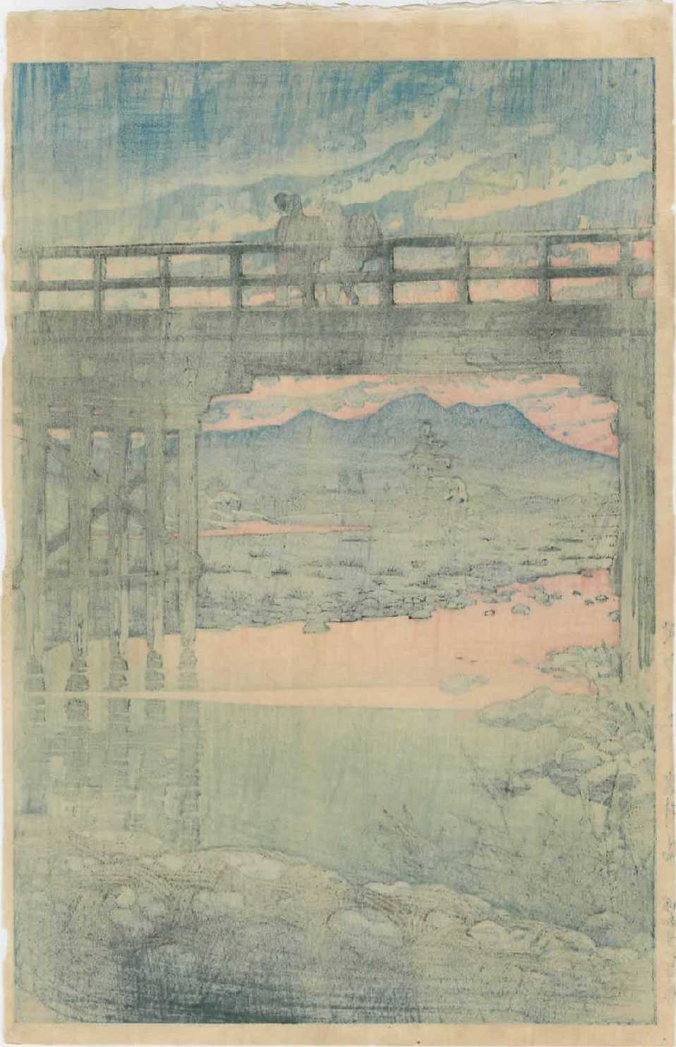 Skillfully executed "bokashi" shading throughout print; light "gauffrage" (embossing) to