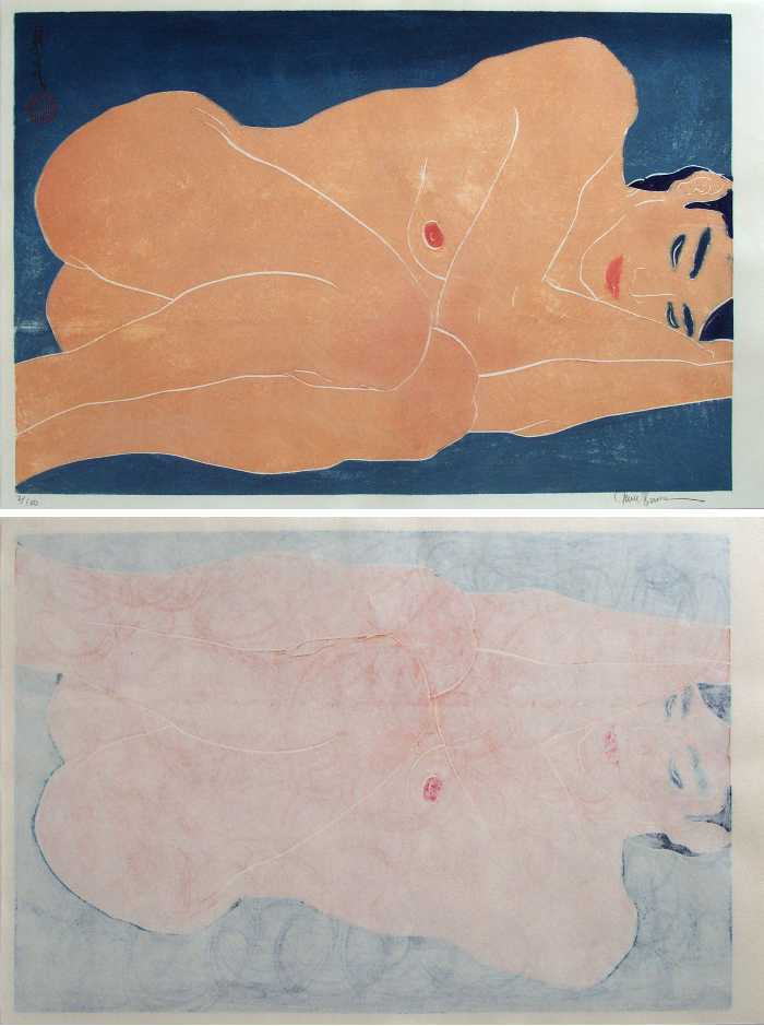 A boldly printed "sosaku hanga" style nude design produced as a "puzzle/jigsaw" print. (Although edition size is 100, less than 20 copies have been printed to date.)