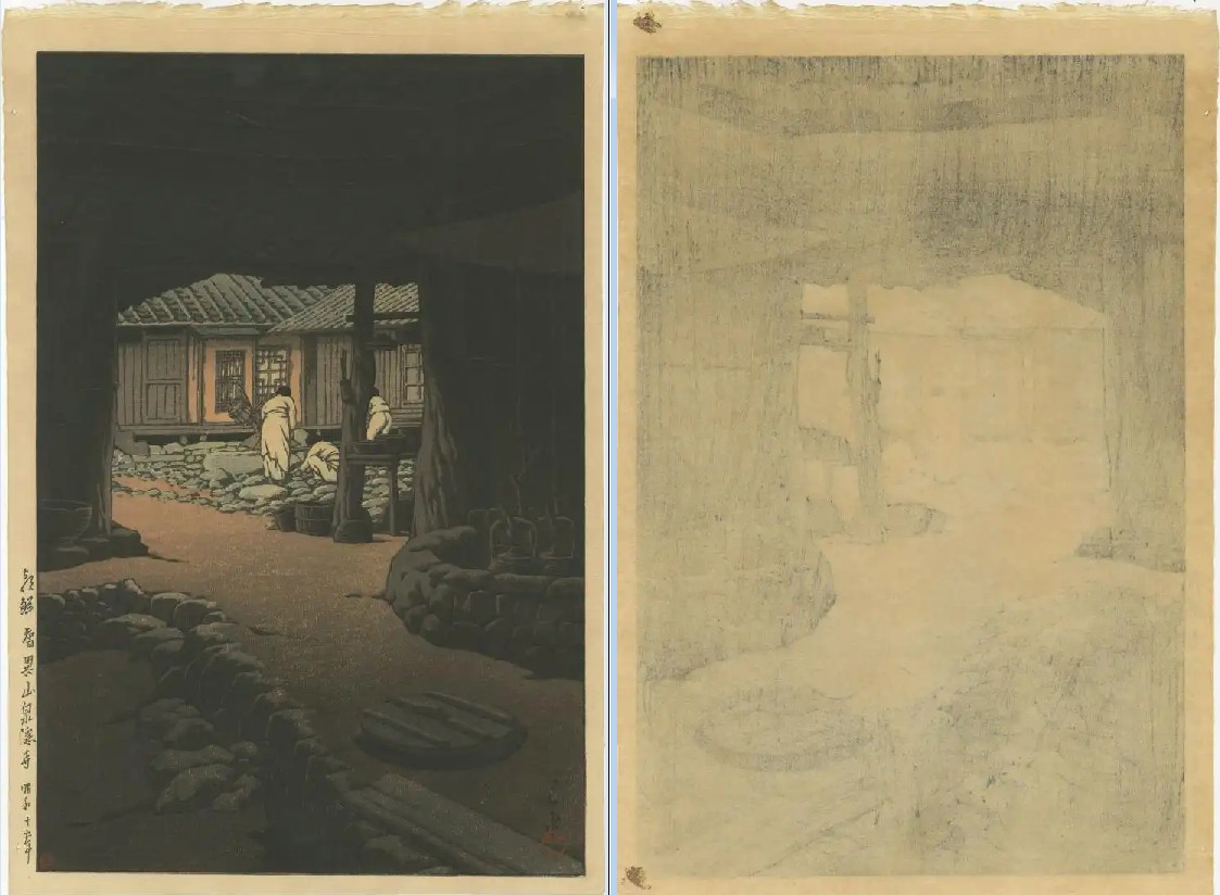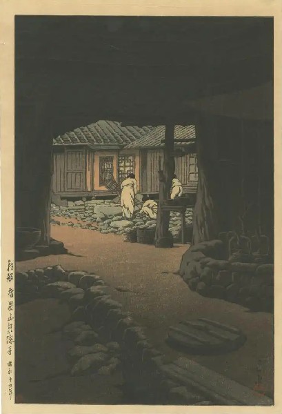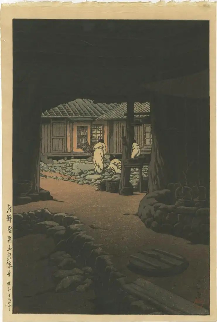 Interior view from Hasui's travels to Korea. Early post-War printing.