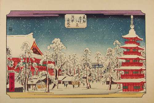 "Snow at Kinryuzan Temple, Asakusa" ("**") |