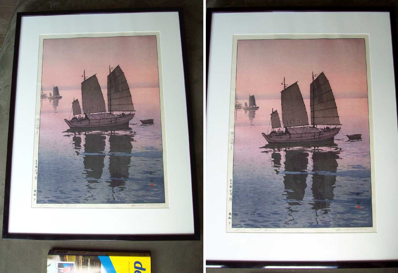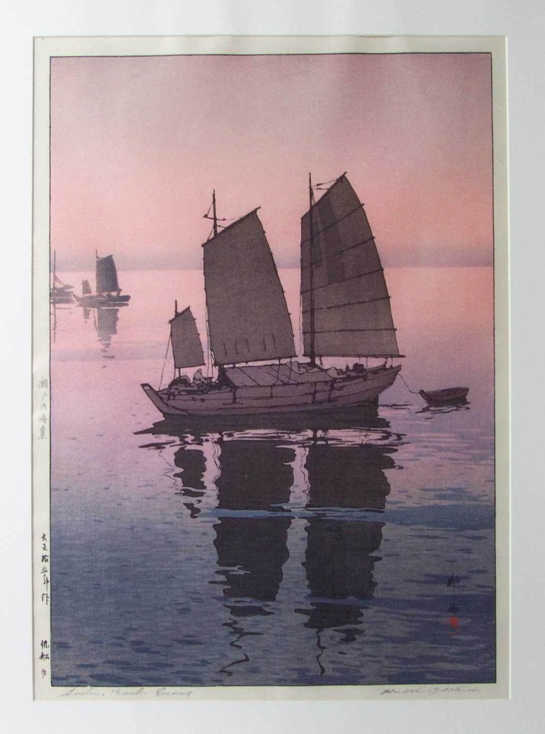 Very large ("double-oban") beautiful Yoshida "sailboat image." Seldom seen--impressively large