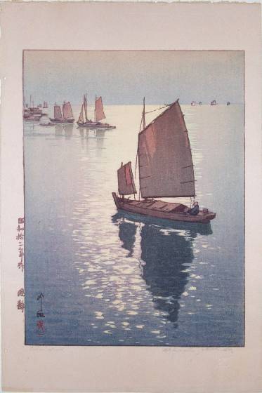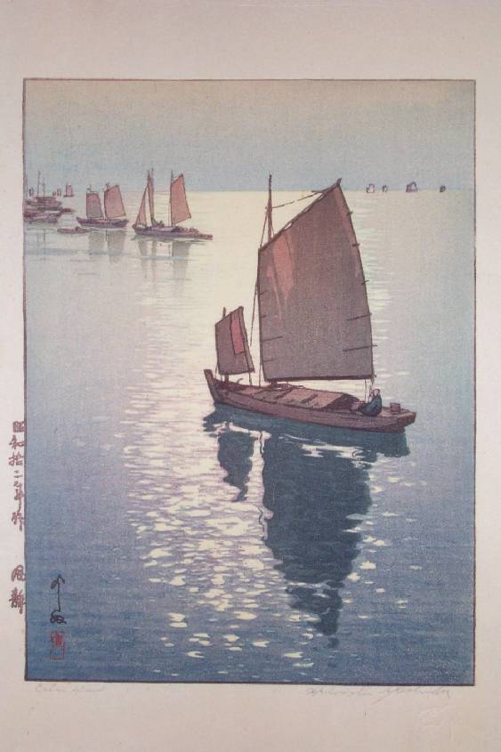 A beautiful Yoshida "sailboat image." Seldom seen. Embossed "studio seal" lower margin. |