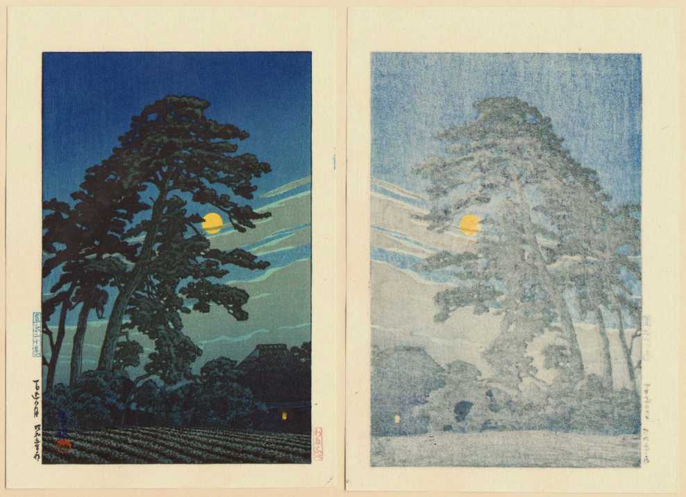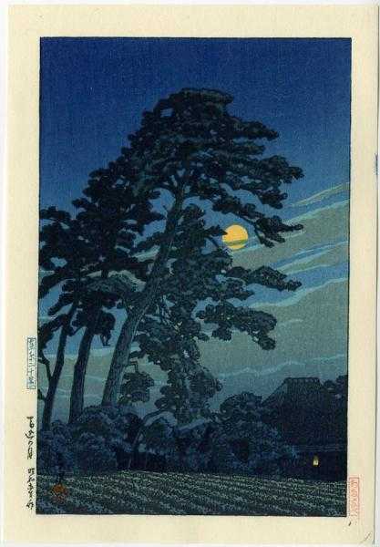 Beautiful moonlit scene done almost entirely as an "aizuri" (shades of blue)