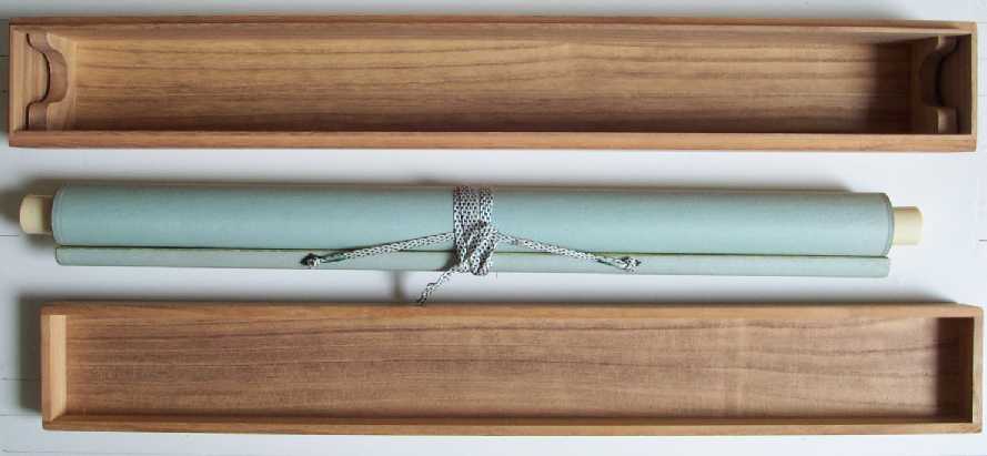 Entire "kakejiku" (hanging scroll) is 21 5/8 x 72 1/2 overall. |