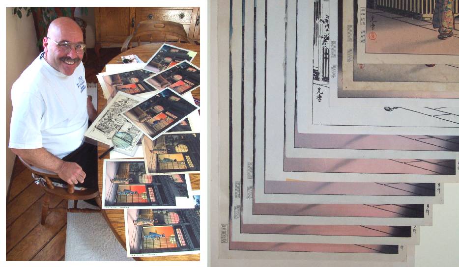Marc Kahn with Our "Tea House" Prints Close-up of sets "A" (top, 1 print), "B" (next 2), and "C" (bottom 7)