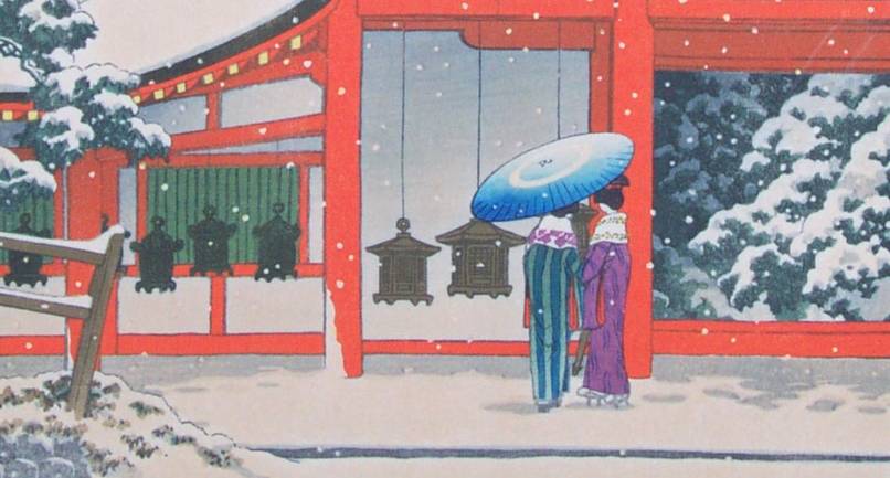 To help gain some perhaps useful additional information about the relative number of copies which exist of this print, we would like to encourage any Hasui collectors worldwide who may own this "winter Kasuga" print in their collections to kindly contact us.