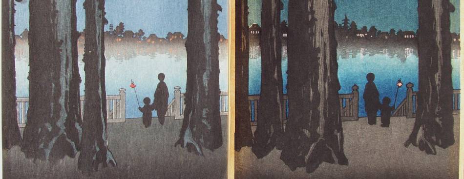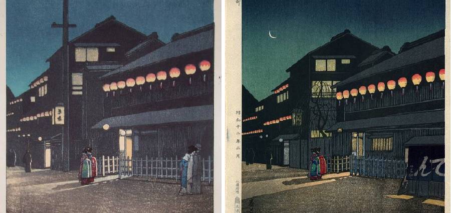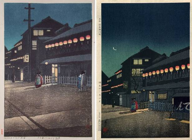 Hasui's 1933 "Evening at Soemoncho" Print and Shunho's(?) 1938 Copy