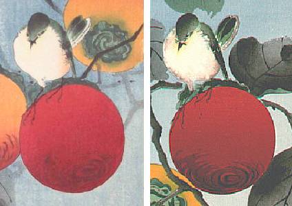 Admittedly, at first glance these two "bird/persimmon" prints ARE clearly different.....with that, we will not argue. We would even