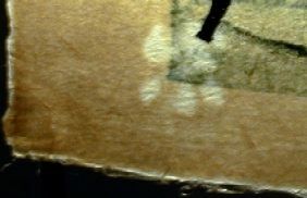 Both early and later editions bear--a few exceptions (e.g., print "Inokashira" #U-22) are known--the “Gei” watermark in one corner of the paper. The "Gei" kanji is the first character of the name Unsodo. "Portrait" format prints have the waternmark in the lower left corner of the paper, in "landscape" format prints the watermarks migrates into the left upper corner. |